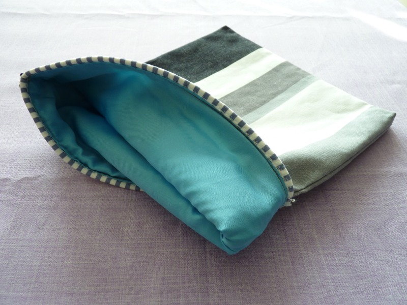 Innen ist die Tasche mit hellblauen Satinstoff abgefüttert und zusätzlich mit Bügelflies verstärkt.