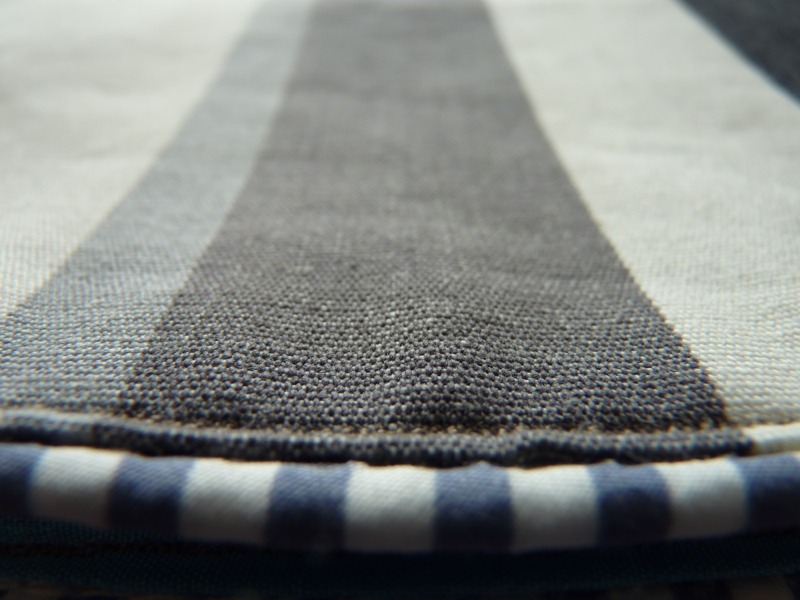 Streifen schwarzweiss | blauer Satin | Paspelband blauweiss gestreift