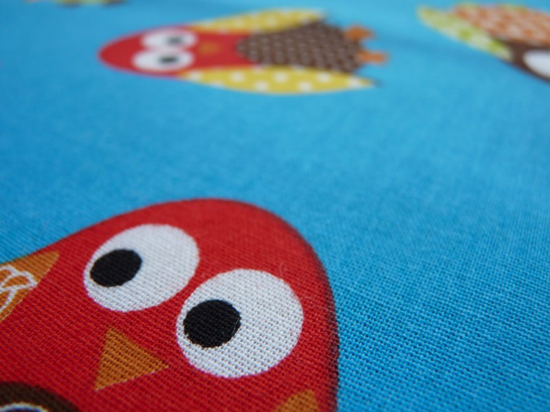 Eulen auf blauem Stoff